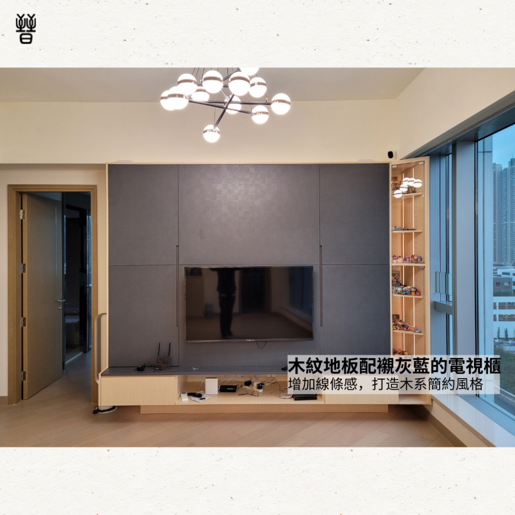 -沿牆身為訂造的木櫃,增加收納空間及不同的擺設🧩🎮