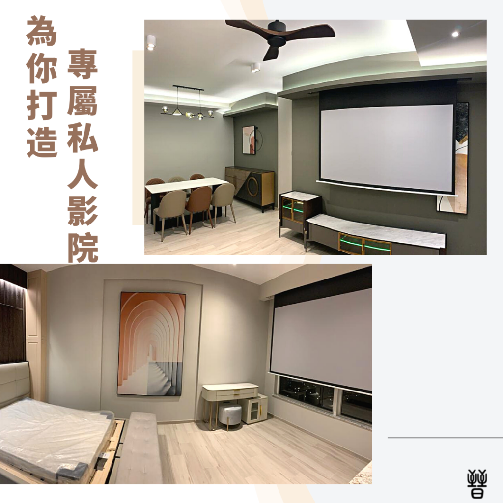 【想安坐家中便擁有在戲院般的影音享受?】 在主人房及客廳均安裝特大投影幕,播放電影、劇集時增强畫面衝擊力,讓你 …