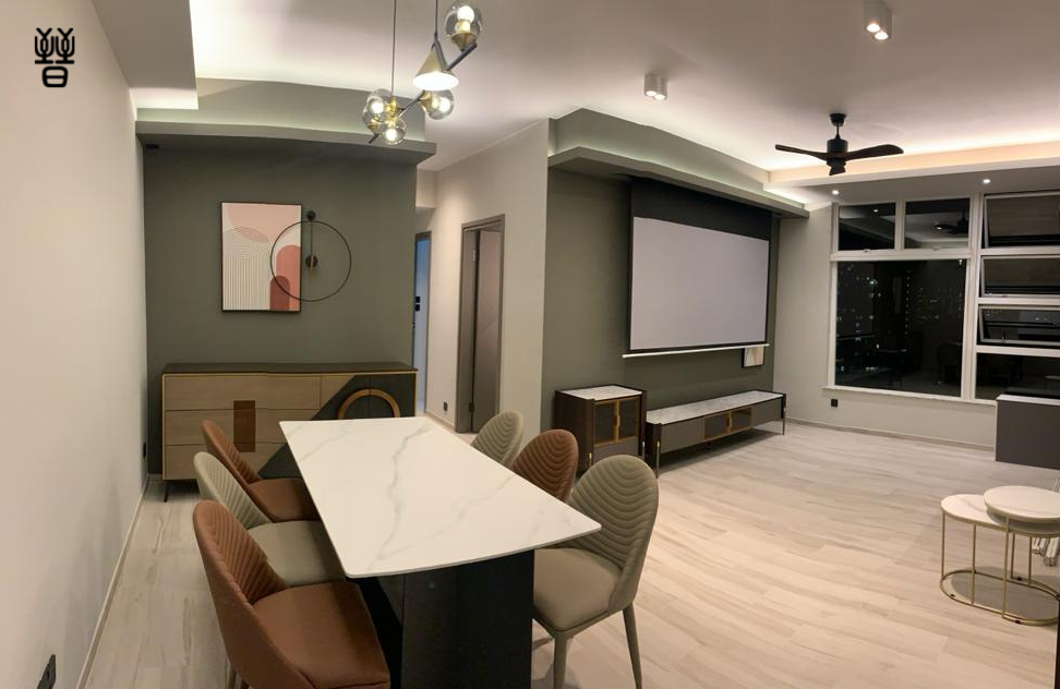 喜歡開放式廚房,但怕油煙四散?為你而設半開放式廚房,阻擋油煙但無阻與家人的互動!想安坐家中便擁有戲院的影音享受?為你打造專屬私人影院,與伴侶在床上或沙發躺著看電影!項目:屯門漣山三房一套單位。項目工程:Legends Decoration and Design,設計公司:Legends Decoration and Design自家設計。工程包含:全屋清拆,設計裝修及訂做傢俬。